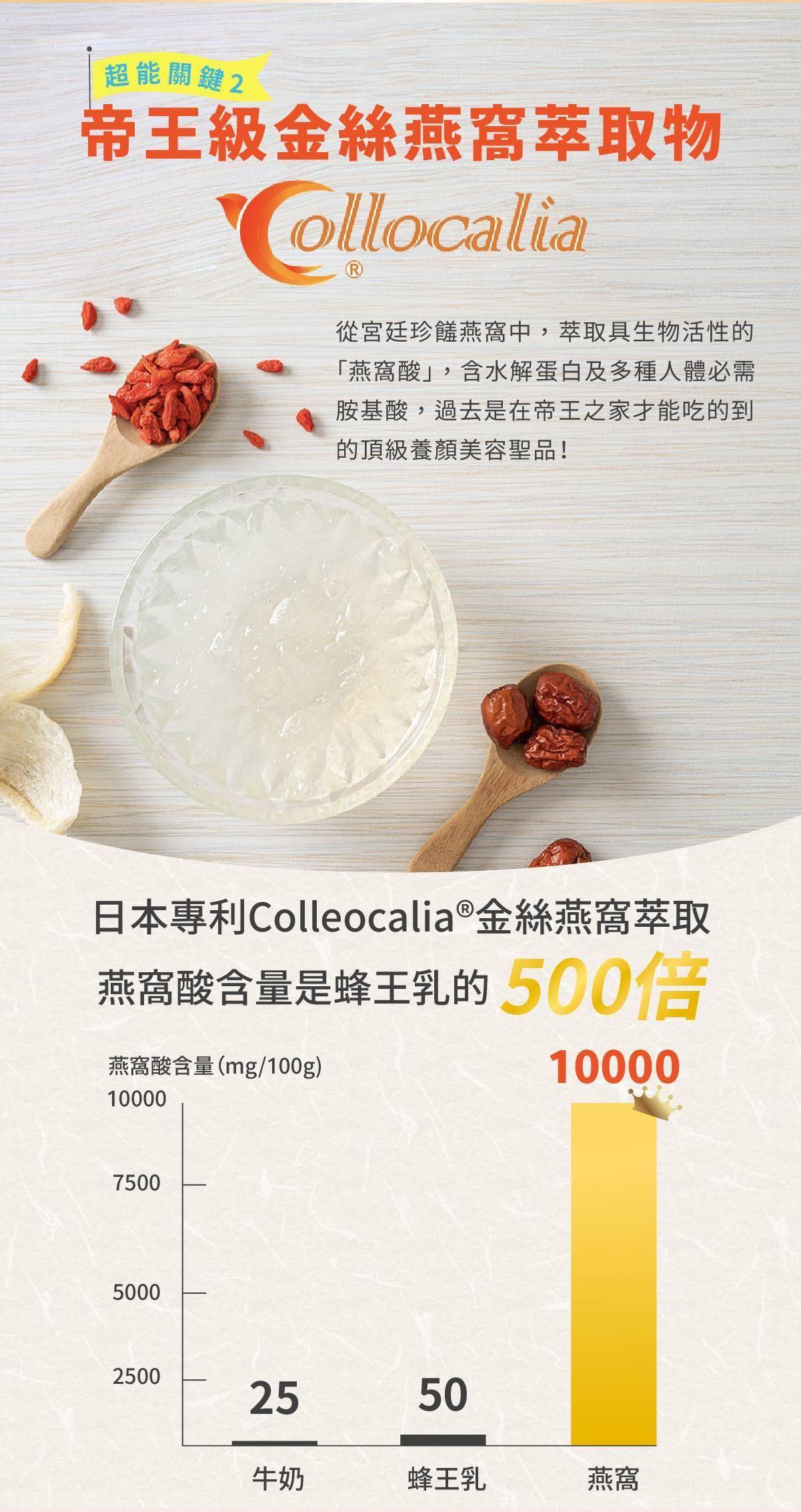 採用美國專利 Pureway®C,吸收率高達一般維他命C 的2倍以上,且穩定性佳不刺激,適合絕大數體質使用。另添加日本金絲燕窩與越橘熊果素等高端保養成分,兼顧晶亮、保護、滋養,遠超市售單一成分產品。