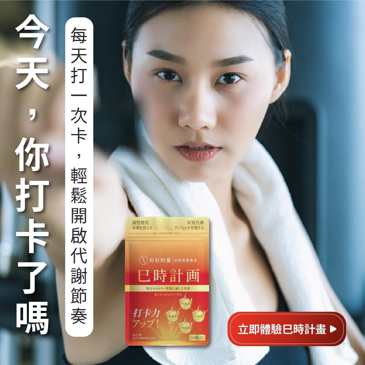 巳時計畫,超燃油逆,好好時養,餐前保養,甲殼素,兒茶素EGCG,藤黃果HCA,黃燈籠辣椒,代謝保養,體態管理,午時搭配,十二時辰養生