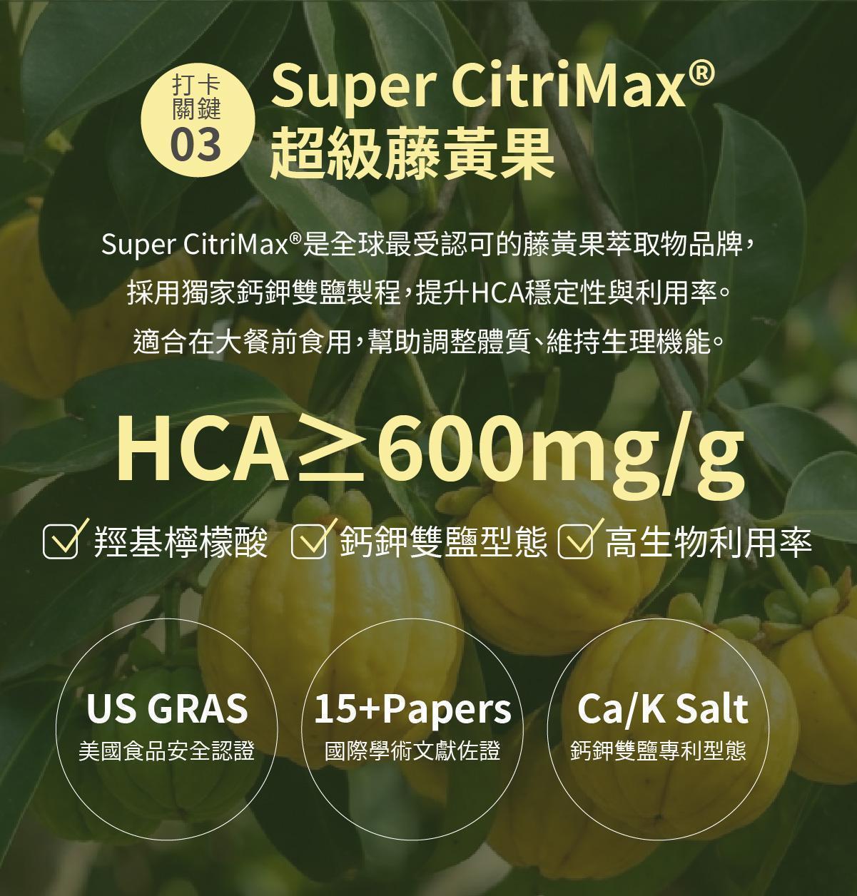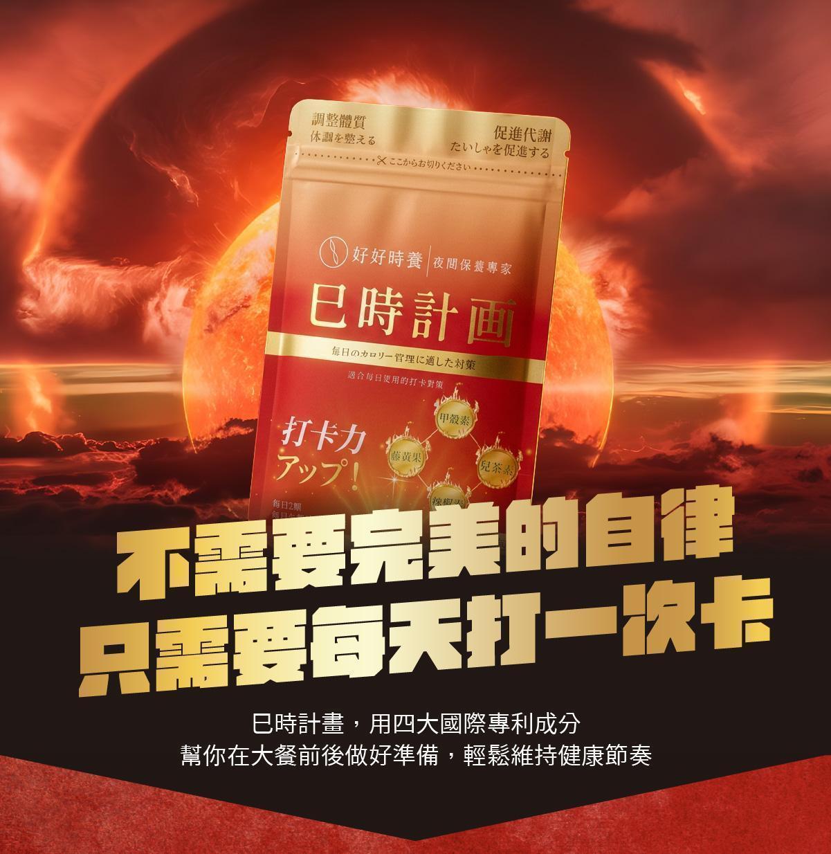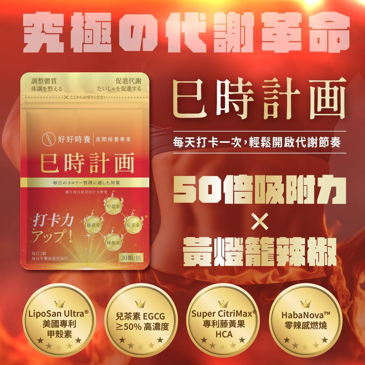 巳時計畫一次集結四大國際專利成分:冰島 LipoSan Ultra® 專利甲殼素、EGCG ≥50% 高濃度綠茶兒茶素、美國 GRAS 認證 Super CitriMax® 藤黃果 HCA、韓國首爾大學聯合研發 HabaNova™ 黃燈籠辣椒。相較市面上多以單一成分或低劑量為主的配方,巳時計畫是從多個面向同時支持日常代謝。